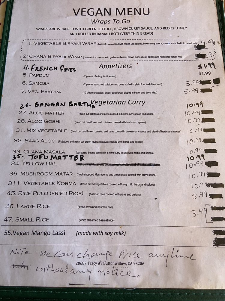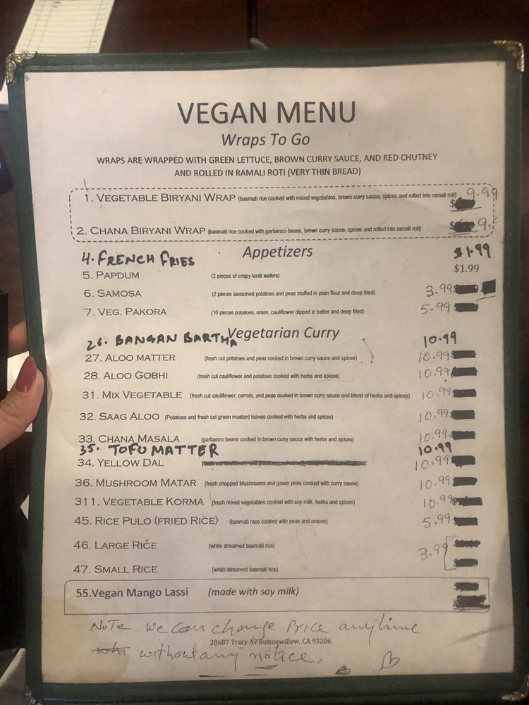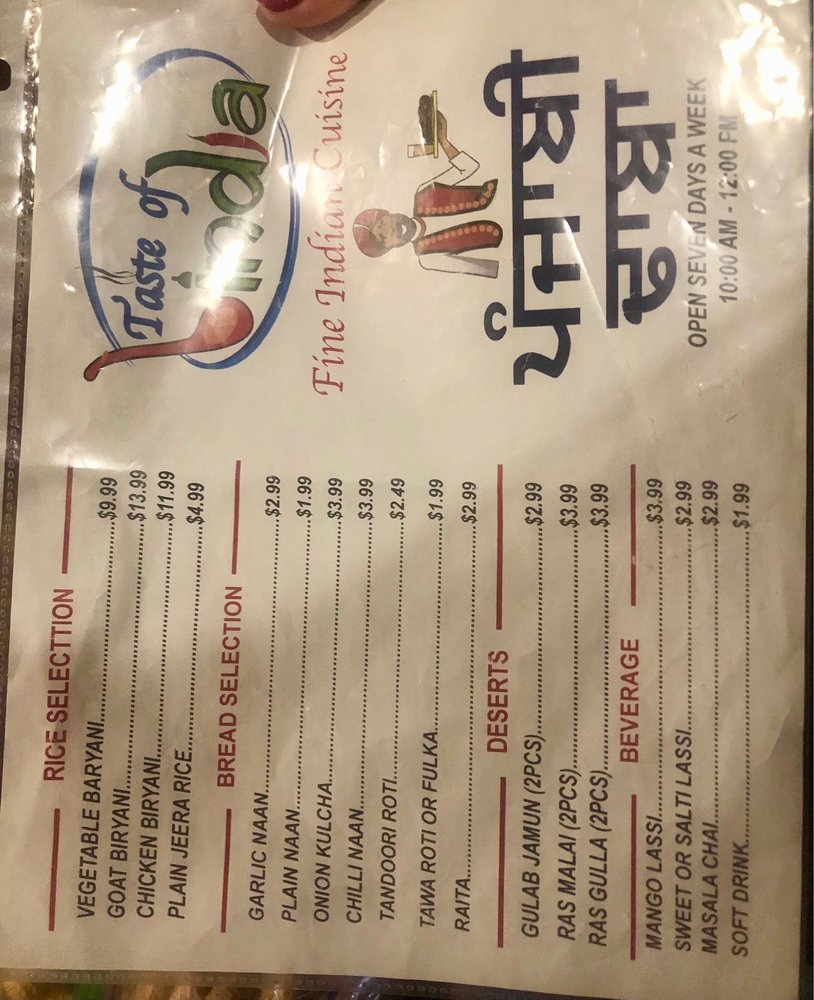 Introducing Taste of India, a vibrant Indian restaurant in Buttonwillow, CA, offering a diverse menu of vegan and vegetarian options. This cozy spot is perfect for a sit-down meal or grabbing food on the go, especially for road trips, as praised by customers. The menu boasts authentic dishes like butter chicken, lamb biryani, and veggie samosas, all prepared with flavorful spices and ingredients. The tandoori chicken and fish are standout dishes, and the fluffy garlic naan is a must-try. The restaurant provides a relaxed atmosphere, with attentive service and ample seating. Whether you're a fan of traditional Indian cuisine or looking to explore new flavors, Taste of India promises a delicious experience for all. Make sure to stop by for a satisfying meal that won't disappoint.